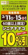 ヨークフーズ 鎌ヶ谷店シニアナナコ10%引!3月11日(水)から15日(日)までの期間シニアナナコをレジにかざすだけ!期間中1回限り...